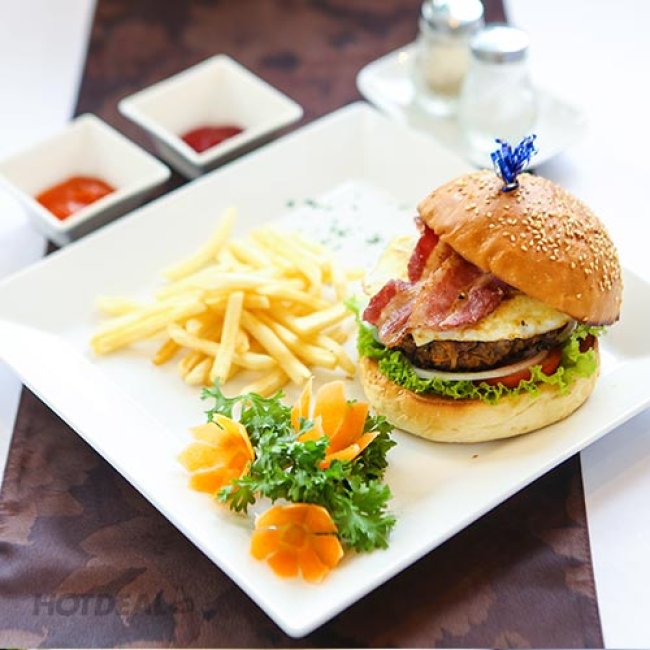 - Thực đơn món Âu đa dạng, nổi bật là các món theo phong cách Pháp và Ý, điển hình như burger, mỳ Ý, pizza, các món heo, bò, gà, hải sản đặc sắc…