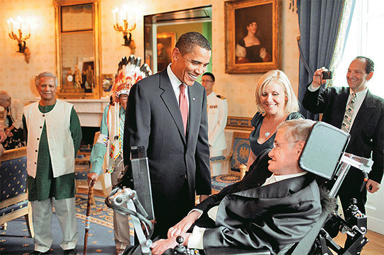 Nguyên Tổng thống Mỹ B.Obama nói chuyện với S.Hawking tại Nhà Trắng năm 2009.