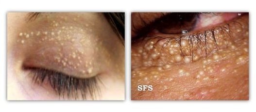 - Không can thiệp gì. - Đốt điện 5. Nang kê (Millium) - Là các sẩn rất nhỏ, trắng lóng lánh như hạt trai xuất hiện trên của mặt phần nhiều quanh mắt. Nó được nghĩ là do các nang chứa chất bã và tế bào sừng. Đièu trị: chích bằng kim hoặc dao mổ sắc và các nang quá nhỏ có thể nạo bỏ.