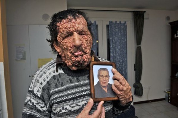 - Trên da có các u mềm, kích thước khác nhau, không đối xứng, tròn, có khuynh hướng lủng lẳng treo trên da, là bệnh do di truyền trỗi. - Có các đám mảng màu cà phê sữa, thâm đen màu nâu. - Nắn vào u có cảm giác u nhẽo, rỗng ở giữa. - Có thể trên người có thiểu năng trí tuệ. - Điều trị:
