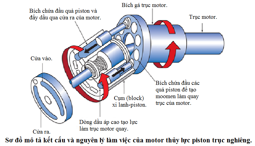 Motor piston trục ngiêng và motor piston hướng trục tạo được momen lớn và số vòng quay lớn.