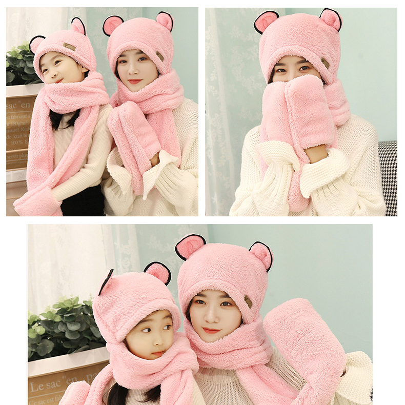 Mũ len kèm khăn kiêm luôn cả găng tay mẹ và bé đều đội xinh nhaMũ len thiết kế tai gấu xinh xắnKhăn liền mũ kèm găng tay tiện lợi, ấm ápChất liệu sợi bông tự nhiên siêu mềm mại, ấp ápCó 2 màu hồng và ghiSize M: Mũ bé dành cho bé từ 3 tuổi đến 9 tuổiSize L: Mũ cho mẹ phù hợp với mọi kích cỡ đầu và bé từ 10 tuổi đều đội ok nhé