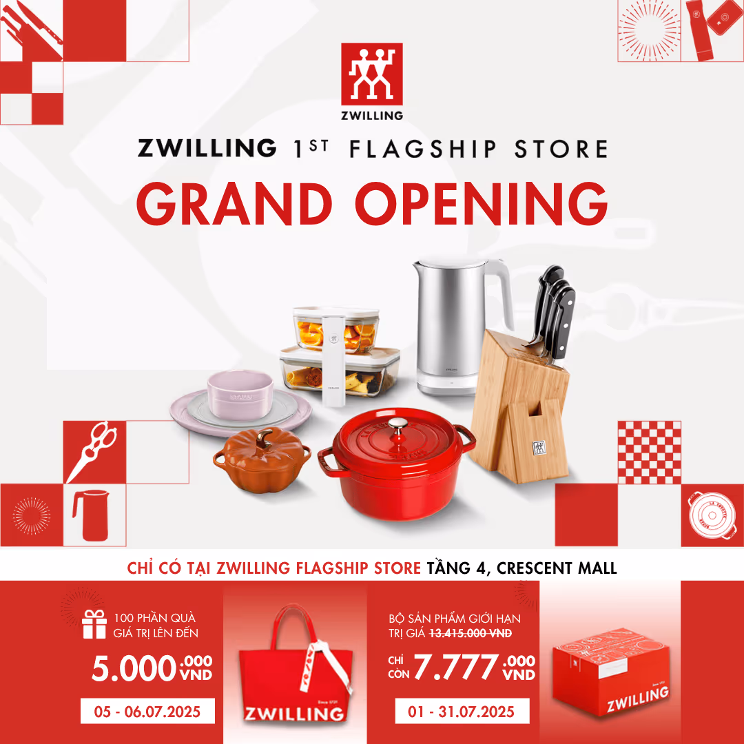 ZWILLING là thương hiệu dụng cụ nhà bếp hàng đầu từ Đức, với lịch sử gần 300 năm, nổi bật với hệ sinh thái bếp toàn diện: dao, nồi chảo, dụng cụ bàn ăn, bộ bảo quản thực phẩm,... cùng các thương hiệu STAUB (Pháp), Ballarini (Ý).