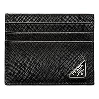 Prada Saffiano Mens Credit Card Wallet Black Nero Silver Triangle Enamel Logo 2MC223 19,774,154đ
