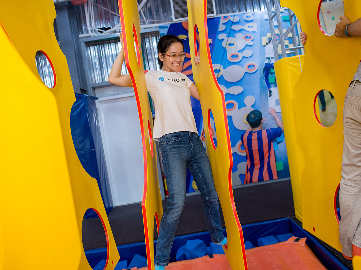 Tích hợp hơn 5 mức độ khó khác nhau trong sân chơi 30m2 đang chờ đợi để tạo nên những thách thức cho bạn. Với nhiều cấp độ khó khác nhau. Ở mỗi giai đoạn bạn cần phải vượt qua các thách thức như vượt chướng ngại vật, đu người trên lưới ngang, vượt qua tấm phomat thẳng đứng, đu dây, hít xà và chạy thật nhanh để leo, chạm lên đỉnh bức tường cong cao vút,… Tất cả đòi hỏi bạn phải có đôi tay thật khéo léo, đôi chân chắc khỏe cùng với sự linh hoạt uyển chuyển và sức bền của cả cơ thể để đến đích cuối của thử thách trong thời gian nhanh nhất có thể.