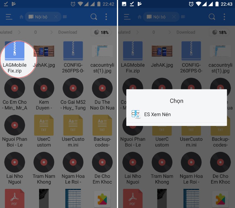 Bước 4: Tìm và chọn vào file đồ họa đã tải về ở Bước 1 (LAGMobileFix) > ES Xem Nén.