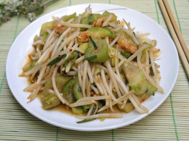 Bước 4: Thêm mướp hương và giá đỗ vào xào cùng tôm. Nêm gia vị cho vừa ăn, khi mướp và giá chín tới thì tắt bếp. Cho hành lá, lá hẹ vào đảo đều. Múc ra đĩa, rắc chút tiêu lên trên, thưởng thức khi còn nóng.
