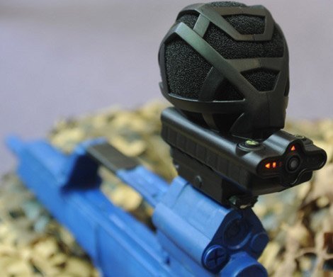 | METRAVIB PEARL gắn trên súng, nổi bật là 1 micro thu âm, phân tích hướng bắn tới. |