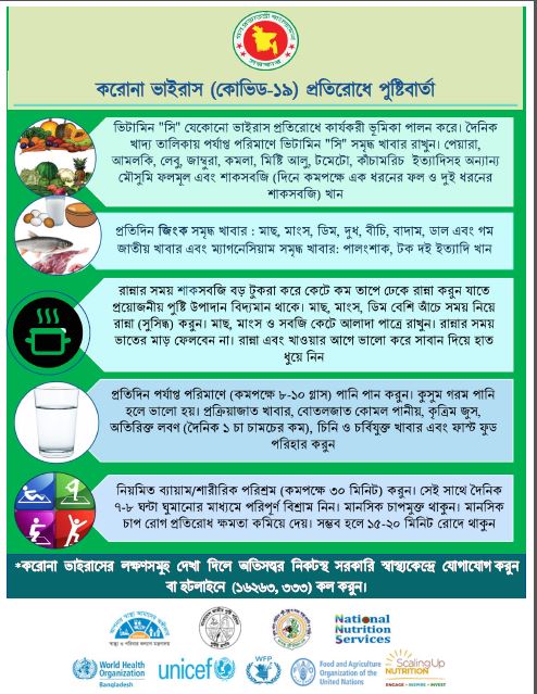 - করোনা ভাইরাস (কোভিড-১৯) প্রতিরোধে পুষ্টি বার্তা