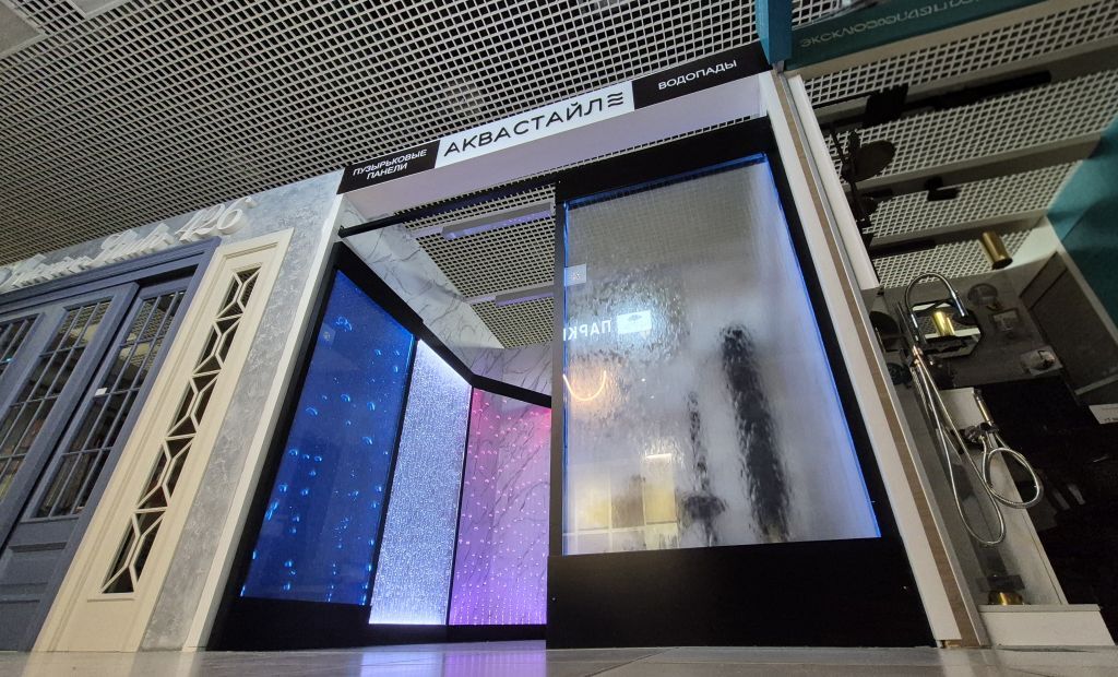 ЭКСПОСТРОЙ НА НАХИМОВСКОМ ПРОСПЕКТЕ НОВАЯ ЭКСПОЗИЦИЯ В МОСКВЕ! Каждый день с 10 до 21.00Представлены все новинки:- Монопанель в размере 1x2.4(h)м с контроллером Aquasence