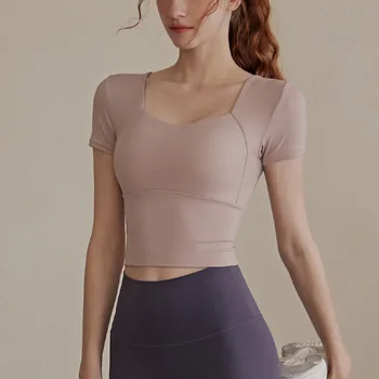 Slim Solid T Shirts for Women with Chest Pads Yoga T Shirts Gym Trainning Running High Elastic Fashion Knit Fitness Short Sleeve 518,652 ₫ 691,550 ₫ -25% (5.0) HOT