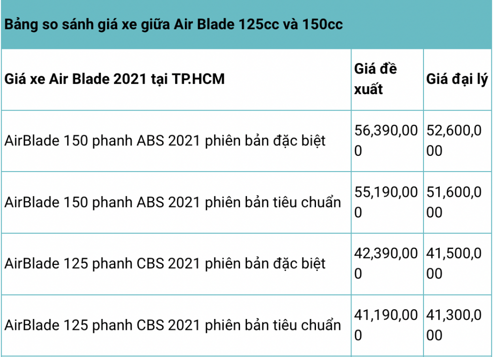 Nếu yếu tố giá cả là thứ quyết định, bạn có thể tham khảo bảng giá để xem nên mua Air Blade 125 hay 150 nhé.