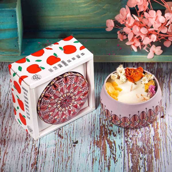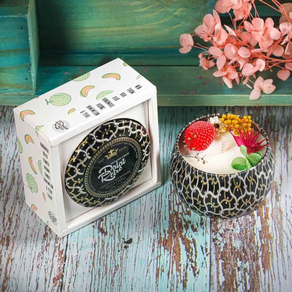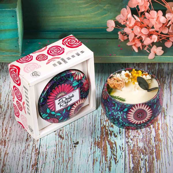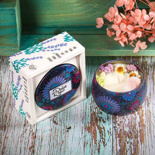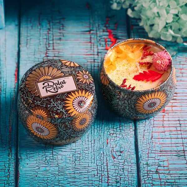 - Nến thơm mẫu hộp thiếc hoa khô, 120g, Dalat Retro