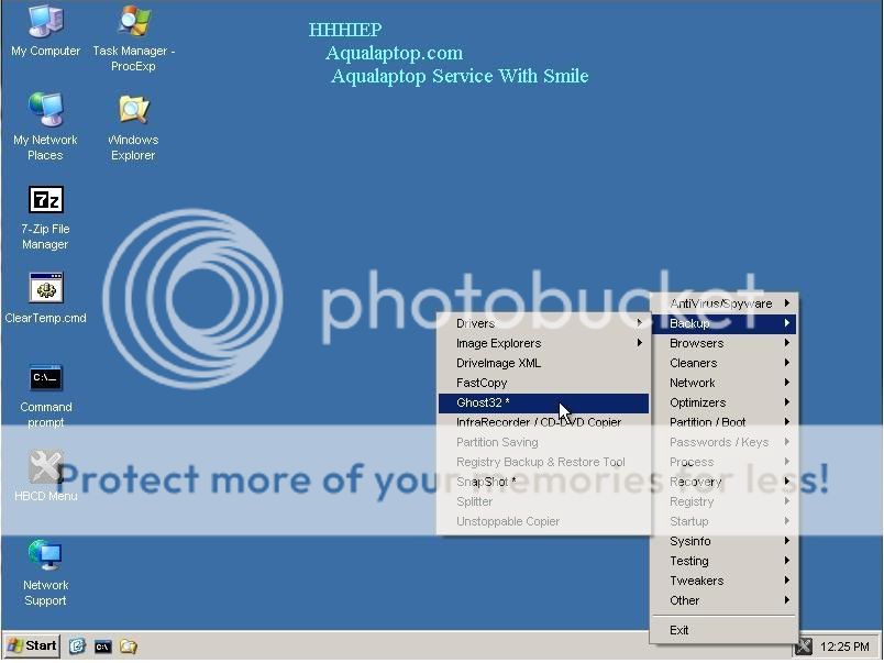 Sau đó các bạn Kick chuột vào biểu tượng của đĩa Boot chọn Backup\Ghost32 như hình.