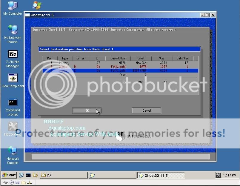 Bước 4: Sau khi chia được ổ dùng chung các bạn Copy File Ghost vào đó nhé sau đó cho đĩa Boot vào khởi động lại máy trong quá trình khởi động các bạn ấn dữ phím “C” để Boot từ ổ CD hoạc ấn dữ phím “Option” rồi lựa chọn ổ CD để Boot vào. Đến lúc này sẽ có sự lựa chọn Boot vô CD hay Load Winmini các bạn chọn Winmini nhé.