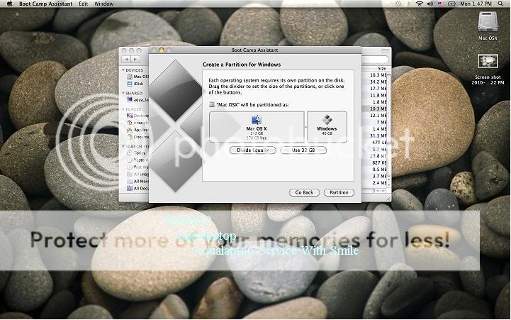 Các bạn chia thêm phân vùng dùng chung cho Mac và Win nhé Format nó về Fat 32, nếu Mac OS của bạn là 10.6.2 trở lên có thể Format NTFS các bạn nên để NTFS nhé.