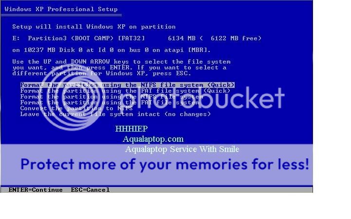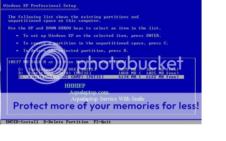 Sau khi chia ổ cài Win các bạn chọn Partition. Cho đĩa Win XP vào máy rồi chọn Start Installation để bắt đầu cài đặt. Đến bước này máy của bạn sẽ tự khởi động và Load đĩa Win. Bước 2: Đến bước chọn ổ cần cài Win các bạn chọn đúng phân vùng cần cài nhé “BOOT CAMP” như trên hình.