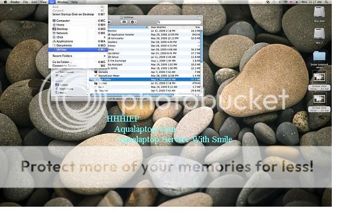 Đến bước Setup Copy File các bạn dữ nút nguồn tắt máy đi nha. Bước 3: Bật lại máy ấn dữ nút Option lúc này máy sẽ hiện ra 2 ổ cho bạn chọn để Boot vào. Bạn ấn nút nhả đĩa cài Win ra và chọn phân vùng chứa đệ điều hành Mac để vào nhé, Không chọn ổ Windown nhé. Vào Mac các bạn chọn Go\Utillities\Disk Utility.