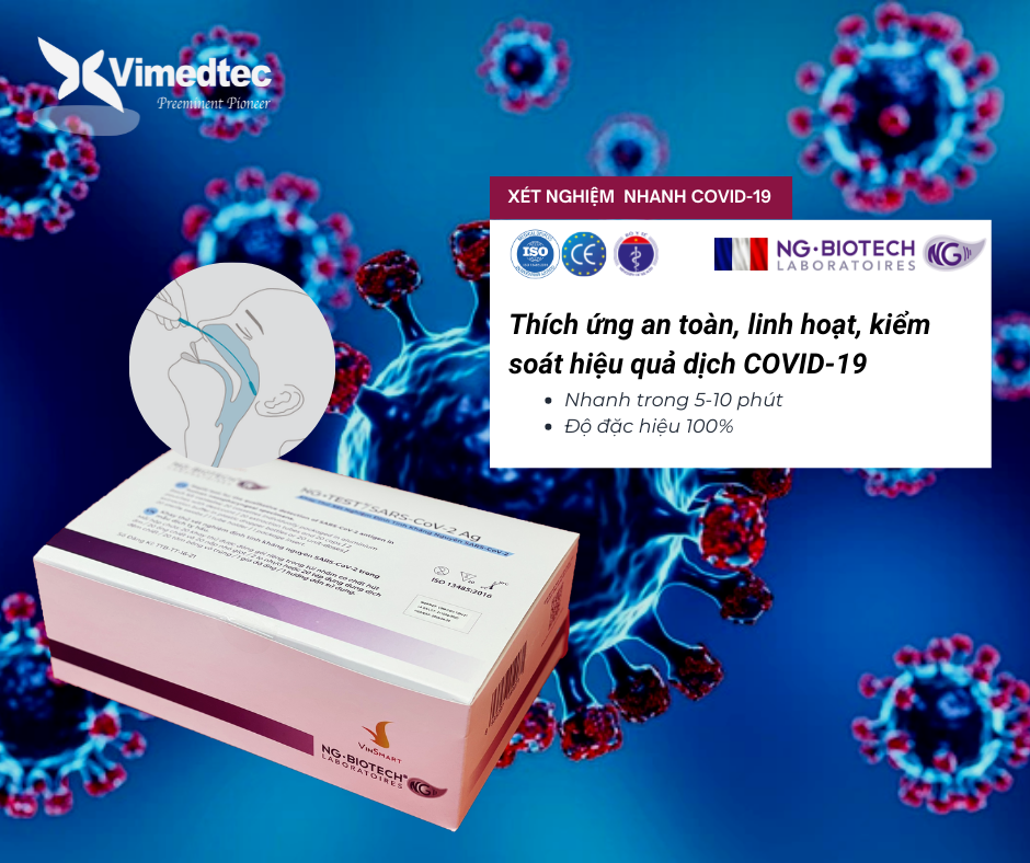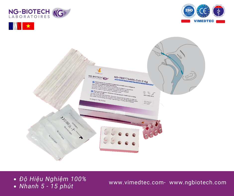 Bộ kit test nhanh NG Test SARS-CoV-2 Ag để phát hiện định tính kháng nguyên SARS-CoV-2 trong mẫu mũi họng và hầu họng của NG Biotech là một xét nghiệm chẩn đoán nhanh trong ống nghiệm, hiện đại và dễ sử dụng.