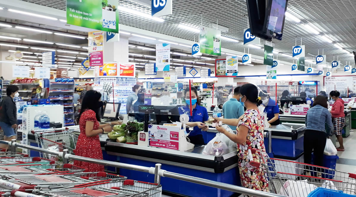Tại nhiều trung tâm thương mại, siêu thị, chợ, đại lý trên địa bàn TP bày bán hàng hóa dồi dào, nhất là các mặt hàng tiêu dùng thiết yếu hàng ngày từ gạo, mì ăn liền, dầu ăn, nước chấm, gia vị các loại, thịt gia súc gia cầm và các sản phẩm từ thịt, thủy hải sản tươi sống, rau củ quả… cho đến muối ăn, đường, sữa, bánh kẹo, nước uống đóng chai, cà-phê, v.v…