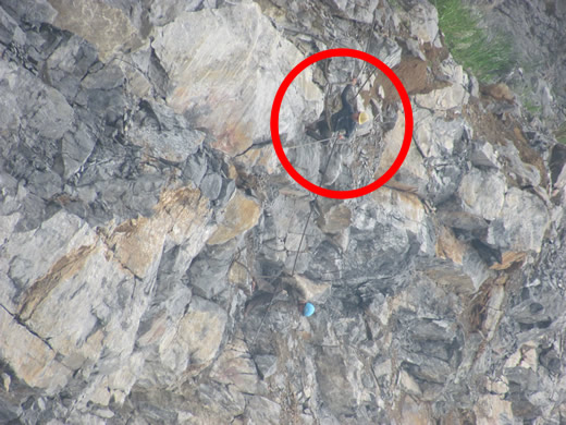 | Thợ đá dùng dây treo mình trên những vách đá tai mèo để tìm đá cảnh. |