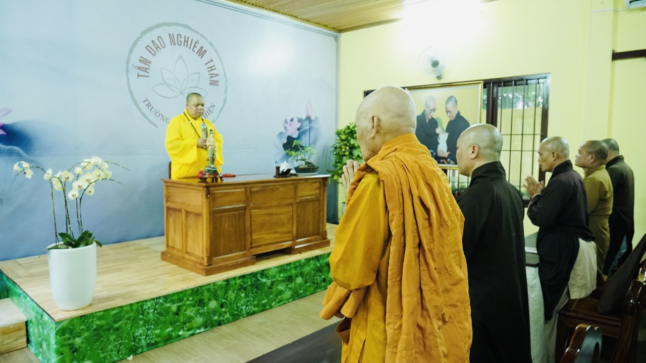 Thượng tọa chia sẻ: Nghi là dáng, mẫu, nghi thức, nghi lễ, khuôn phép…; lễ là lễ giáo, lễ bái, cúng tế, tôn thờ, cung kính… Như vậy, nghi lễ có ý nghĩa rất rộng, bao trùm hành vi, thái độ, tín ngưỡng, văn hóa, ngôn ngữ, phong cách của con người và xã hội. Trong nghĩa hẹp thì nghi lễ là nghi thức hành lễ tụng niệm mang tính tín ngưỡng thờ phụng của một tôn giáo.