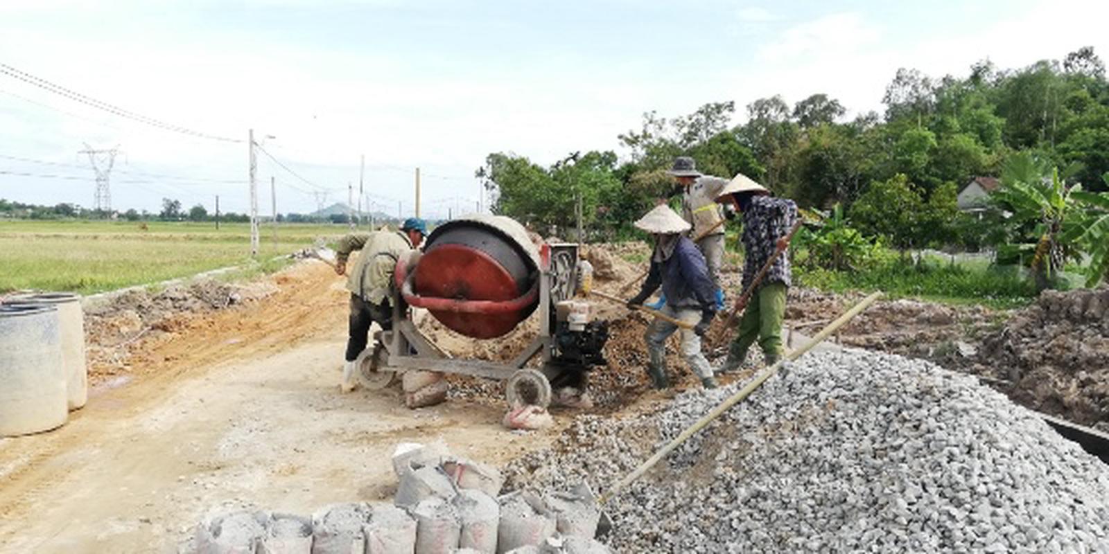 Thi công không cần bảng cấp phối mà công nhân tự “tiên lượng” mác bê tông. Ảnh: HY