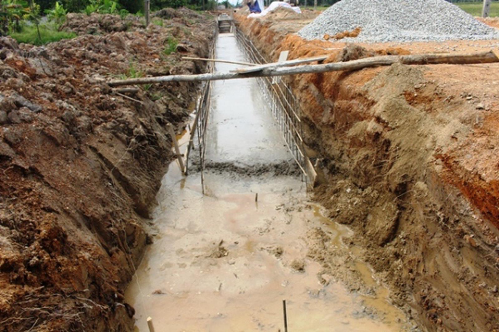Không dừng lại ở đó, đơn vị thi công còn cẩu thả cho đổ bê tông trong khi tuyến mương ngập nước bẩn, bùn lầy…