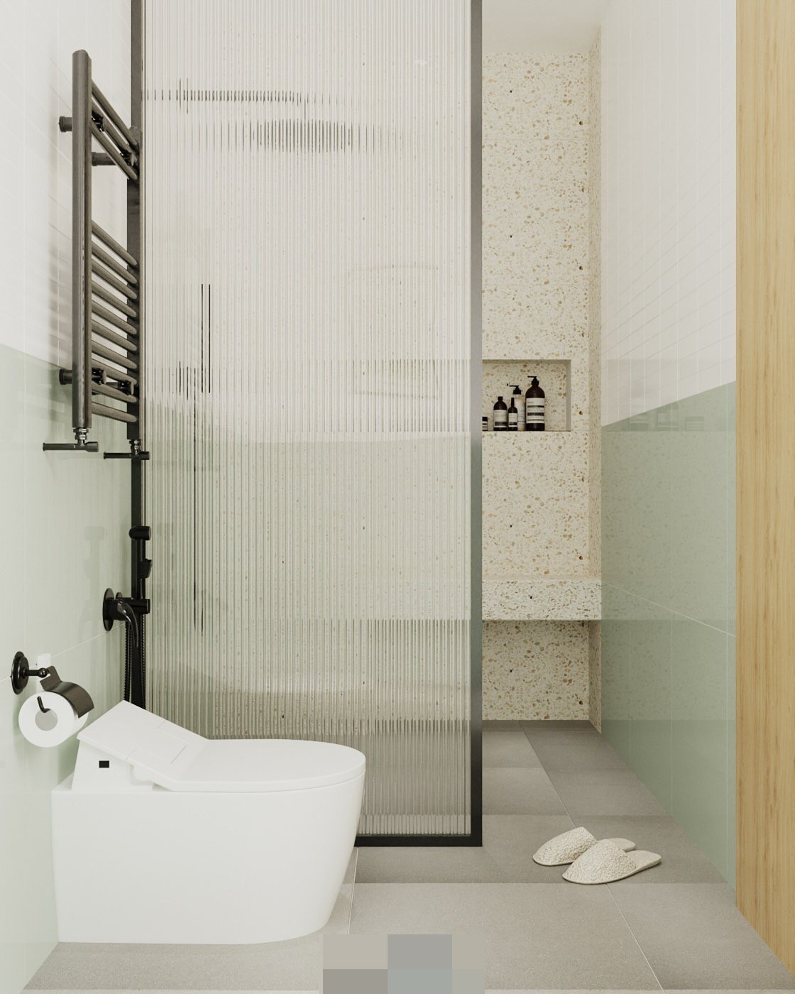 Thiết kế phòng tắm vẫn theo tiêu chí giản tiện nhất có thể nên không cần quá nhiều đồ đạc. Không gian được sắp xếp đơn giản, vừa đáp ứng được nhu cầu vừa mang lại cảm giác sạch sẽ khi sử dụng.