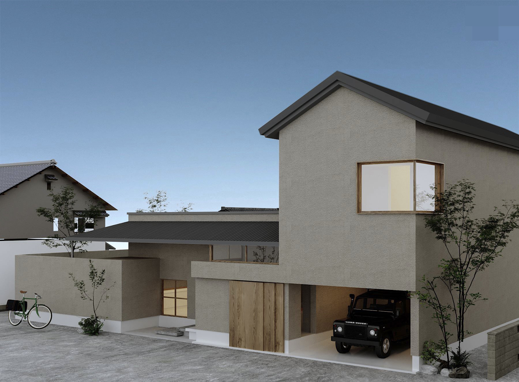 Ngôi nhà như các hình khối sắp xếp lại với nhau. Công năng sử dụng bao gồm: 2 phòng ngủ, 2 vệ sinh, 1 bếp+ăn, 1 garage ô tô, 1 sân vườn.