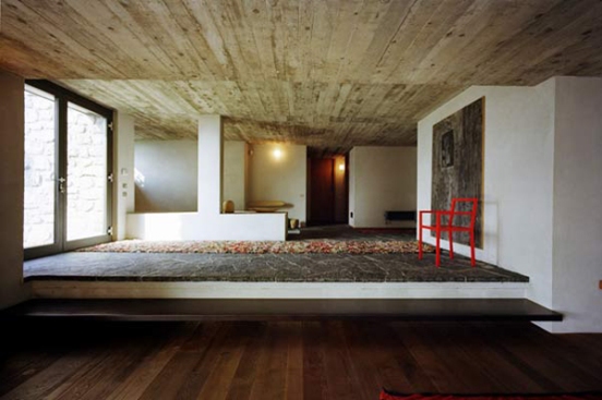 Phong cảnh hồ Como làm tăng giá trị ngôi nhàNgôi nhà trên sườn đồi nhìn ra mặt hồ Como này là một trong những tác phẩm tâm đắc của ông. Các bức tường nhà được xây bằng những phiến đá vôi, và ngay cả sàn nhà cũng được kiến trúc sư cho lát bằng nguyên liệu thiên nhiên này.