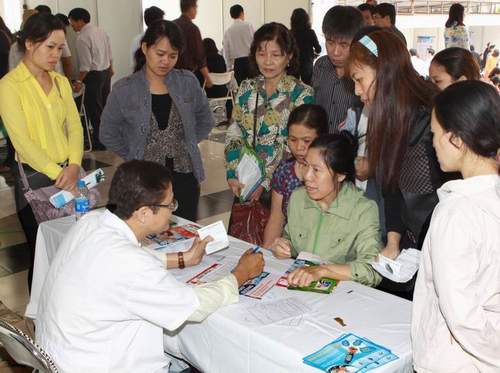Tư vấn về bệnh đái tháo đường cho phụ nữ độ tuổi sinh đẻ tại TTYT dự phòng Hà Nội. Ảnh: TTXVN |