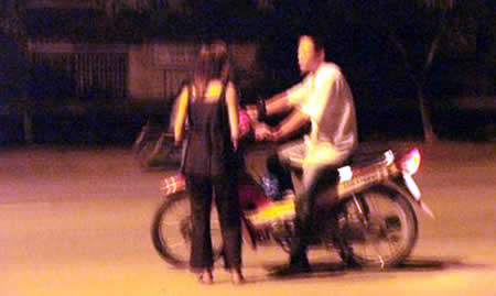| Cảnh “bướm đêm” đón khách bên đường. |
