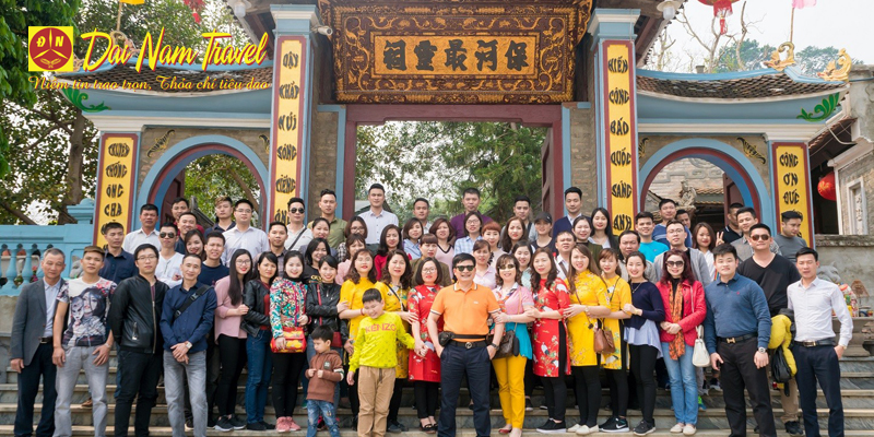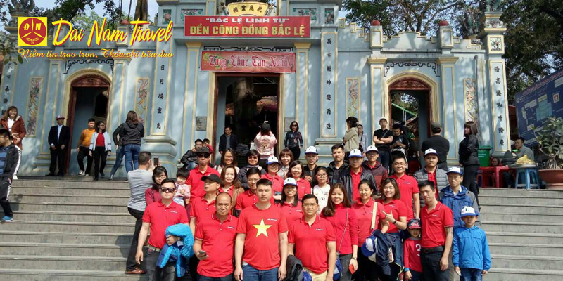 Đoàn VP Hà Nội chụp ảnh lưu niệm tại trước Đền Công Đồng Bắc Lệ