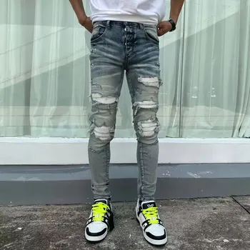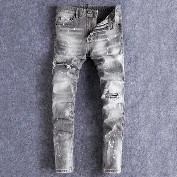 Street Fashion Men Jeans Retro Gray Stretch Slim Fit Patched Ripped Jeans Men Painted Designer Brand Vintage Denim Pants Hombre 1,631,559 ₫ 3,625,686 ₫ -55% (5.0) HOT