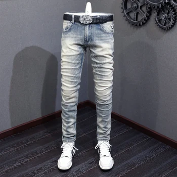 Italian Fashion Men Jeans Light Gray Blue Slim Fit Retro Ripped Jeans Men Vintage Trousers Casual Designer Denim Pants Hombre 1,407,368 ₫ (5.0) HOT