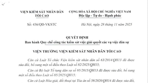 17/12/2025 13:35VKSND tối cao ban hành Quy chế công tác kiểm sát việc giải quyết các vụ việc dân sự