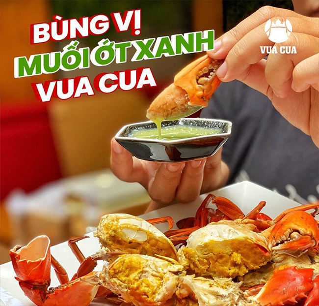 - Vua Cua - hệ thống nhà hàng quy tụ nguồn cua ngon cùng các nguồn nguyên liệu sạch từ khắp đất Việt vào một thực đơn độc nhất với 12 loại nước sốt độc quyền.