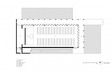 Ở phía Nam và phía Đông, hệ thống cửa gỗ chắc chắn, có thể xoay quanh trục đứng trung tâm nó kết hợp với khe sáng ở phía Tây và phía Bắc tạo ra một sự thông thoáng tốt cũng như một bầu không khí thoáng đãng cho nhà nguyện.