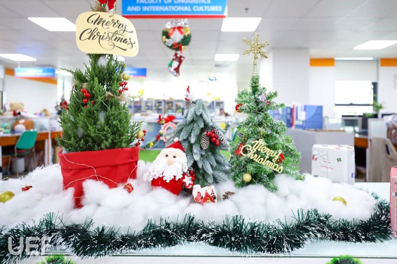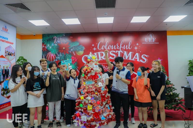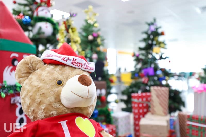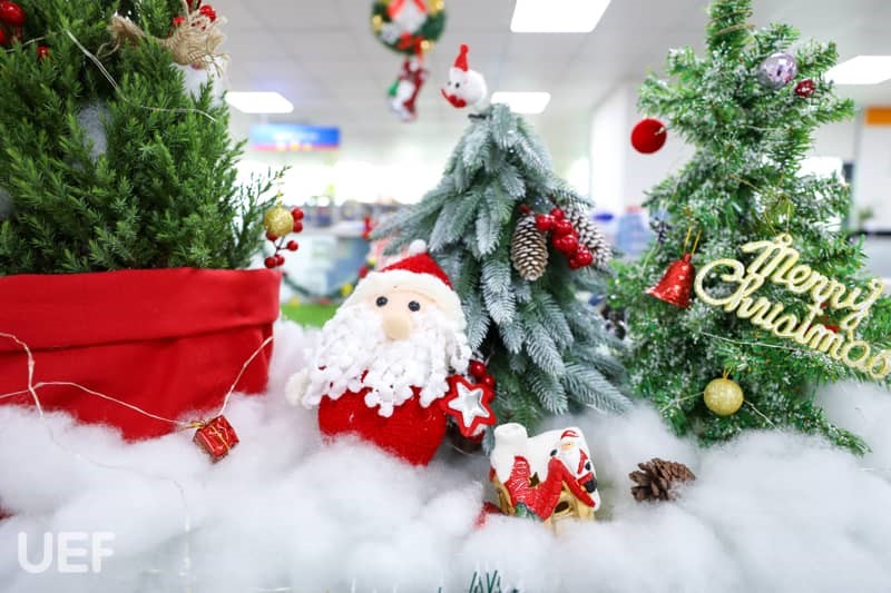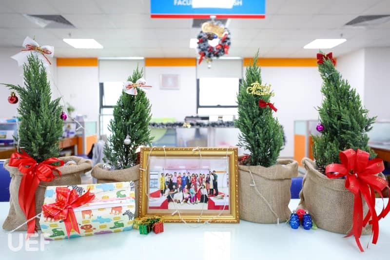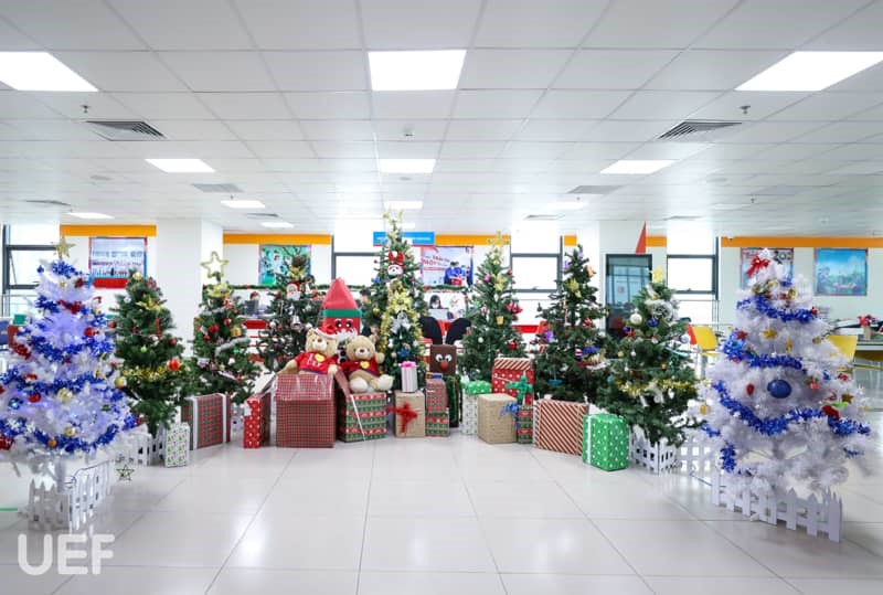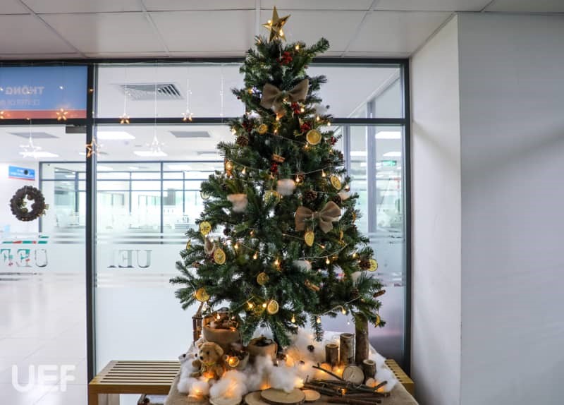 Không khí Giáng sinh đã bao trùm khắp Nhà UEF Từ sảnh trường, khu tự học cho đến các phòng ban, tất cả đều được “lên đèn” để UEFers có thể lưu giữ những khoảnh khắc đẹp khi ghé thăm "Nhà". Mỗi nơi được trang hoàng theo gam màu riêng nhưng cùng chung mong muốn mang đến cho thành viên Nhà UEF cảm giác ấm cúng, hào hứng về mùa Giáng sinh an lành sắp tới. Cảnh sắc thì đẹp đẽ nhưng không khí có lẽ thiếu vắng những âm thanh sống động của các bạn sinh viên. Những hoạt động trang trí cây thông, hóa trang Ông già Noel và Công chúa Tuyết,… vào năm trước với tiếng nô đùa, trò chuyện của các bạn là điều đáng nhớ để gợi nhắc.