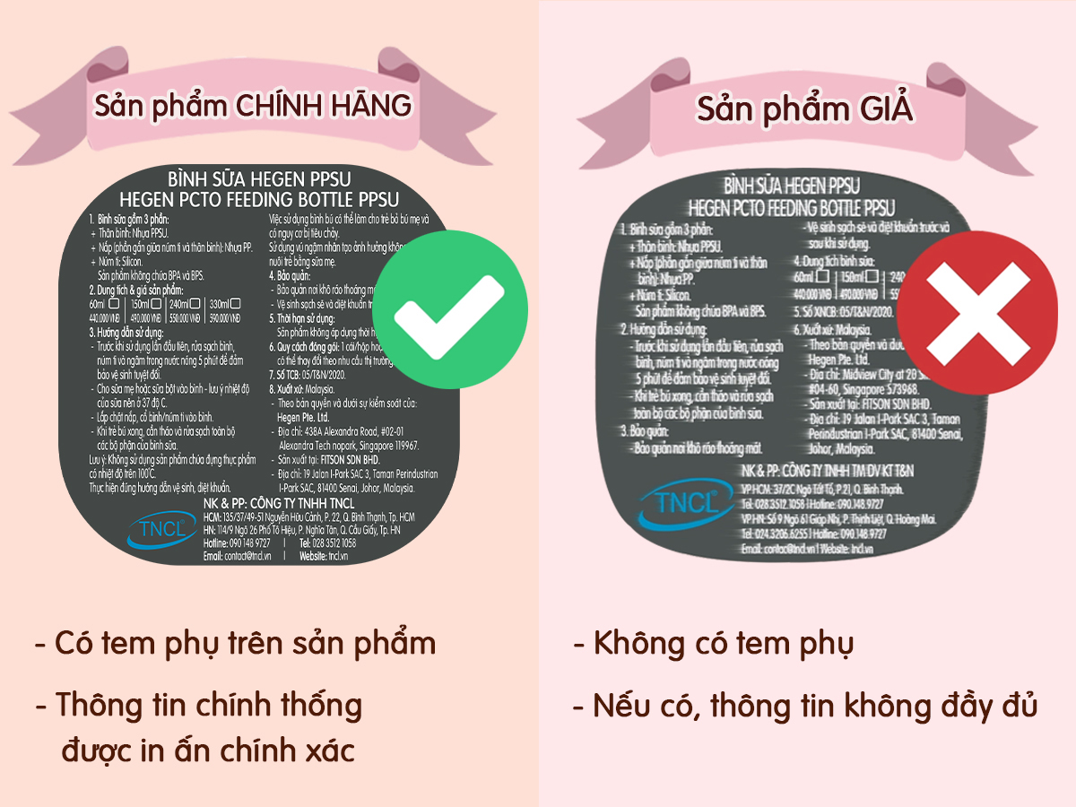 Nhưng hiện nay trên thị trường xuất hiện nhiều hàng giả, hàng nhái, hàng kém chất lượng, hàng không rõ nguồn gốc xuất xứ mang thương hiệu Hegen được trà trộn và đang bán trôi nổi. Nếu Bố Mẹ mua nhầm phải những hàng hóa này sẽ tiềm ẩn nhiều nguy cơ gây hại đến sức khỏe bé yêu của mình.