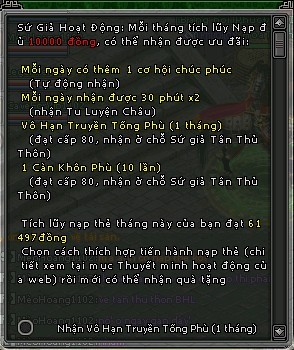 Nhận ưu đãi Hàng Tháng Từ Sứ Giả Hoạt động - Kiếm Thế