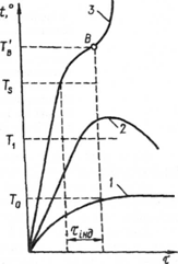 Ta đốt nóng không khí đến nhiệt độ Тs> Т1. Đương nhiên, tốc độ của phản ứng oxi hóa trong trường hợp này sẽ cao hơn nhiều so với trường hợp trước, và nhiệt độ của chất sẽ tăng lên trên nhiệt độ không khí Ts, đạt đến giá trị Tw, sau đó nhiệt độ của chất sẽ tăng lên nhanh chóng. tăng đến nhiệt độ cháy. Quá trình cháy tự phát được xem xét bằng ví dụ về hỗn hợp khí, đặc trưng không chỉ của hơi và khí dễ cháy. Nó áp dụng cho chất rắn.
