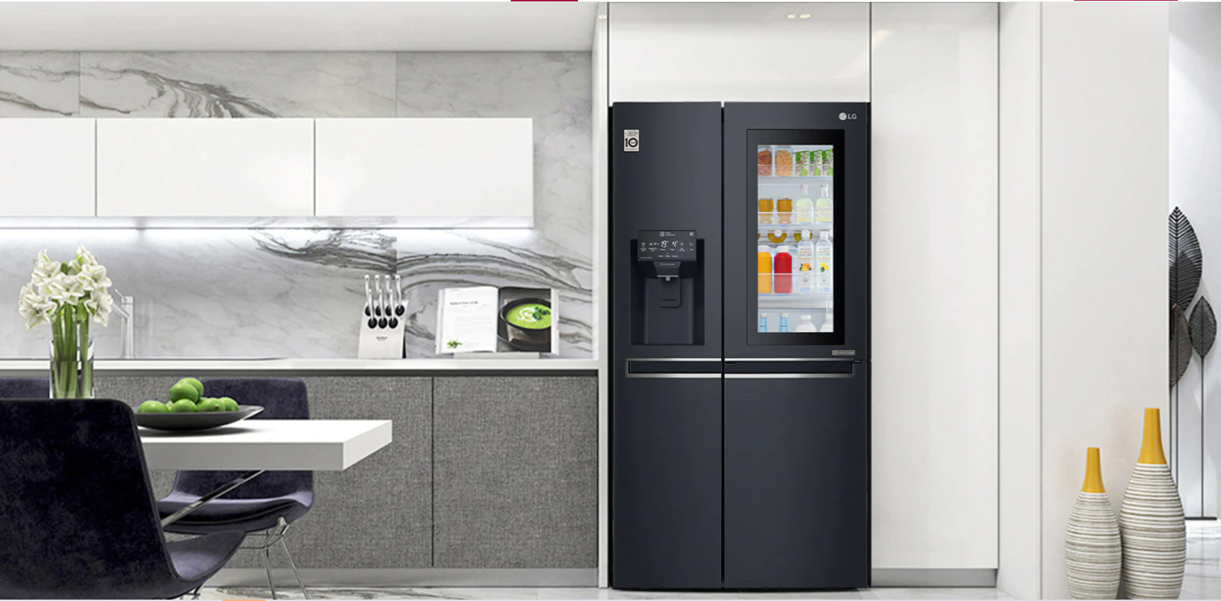 Dòng sản phẩm Instaview Door-In-Door có 2 sản phẩm nổi bật là Tủ lạnh LG Inverter Side by side 602 lít GR-X247JS Instaview Door-In-Door & Tủ lạnh LG Inverter Side by side 602 lít GR-X247MC Instaview Door-In-Door. Nếu như GR-X247JS có gam màu xám sang trọng, tinh tế thì GR-X247MC lại mang một màu đen huyền bí, mạnh mẽ với những đường nét được chăm chút tỉ mỉ.