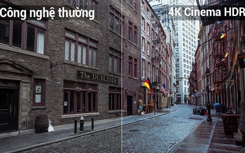 HDR là công nghệ tăng vượt bậc độ phủ của cả độ tương phản và màu sắc. Phần sáng sáng hơn rất nhiều, khiến hình ảnh thêm nhiều chiều sâu hơn. Màu sắc có thể hiển thị nhiều hơn, khiến hình ảnh rực rỡ hơn.Khi xem nội dung HDR, sự đối lập giữa vùng sáng/tối sẽ rõ ràng hơn khi mà vẫn giữ lại được chi tiết của vùng đó, không tạo ra cảm giác hình ảnh bị nhợt nhạt, bệt màu.