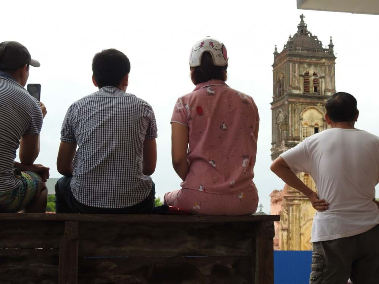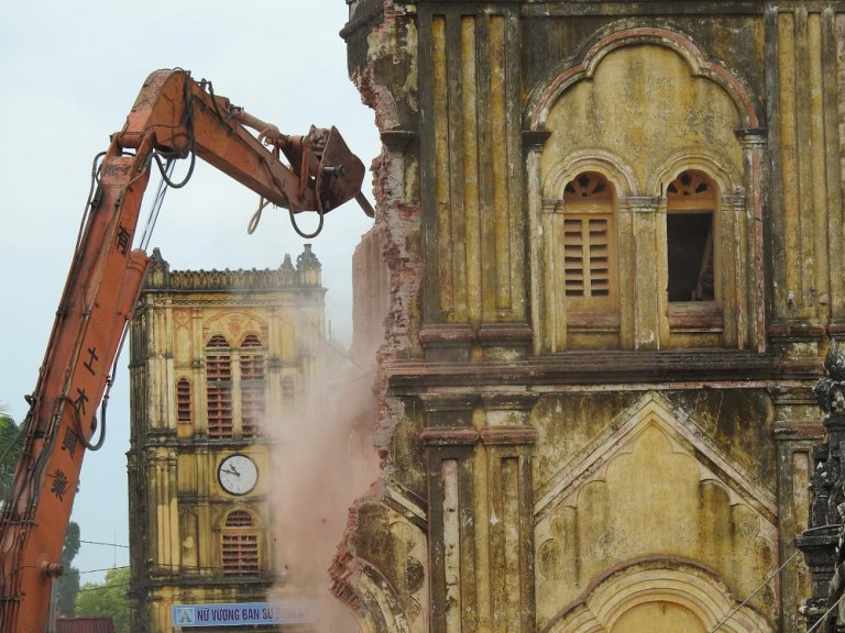 Một số hình ảnh phá dỡ hai tháp chuông nhà thờ Bùi Chu do nhóm cộng tác viên Người Đô Thị thực hiện tại hiện trường:
