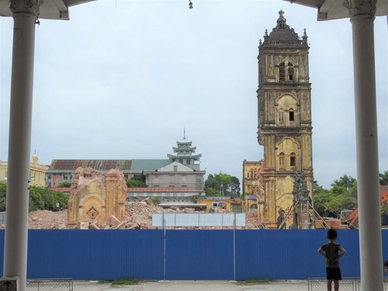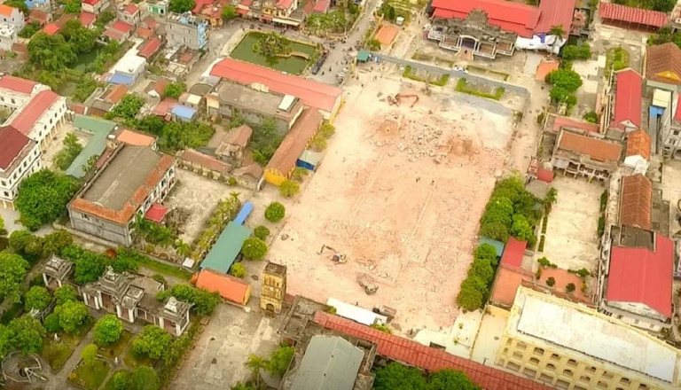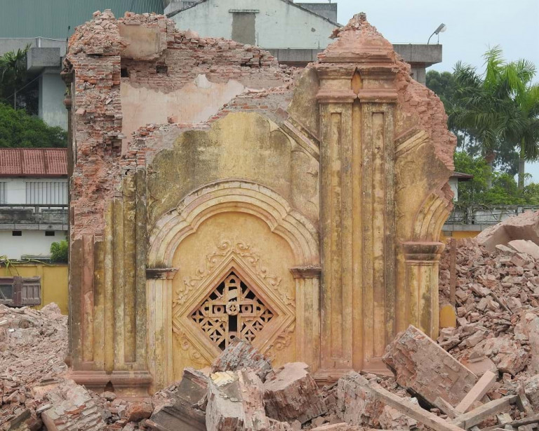 Ngôi thánh đường cổ kính kết hợp kiến trúc Baroque và Việt Nam độc nhất vô nhị được xây dựng từ năm 1885 bởi những linh mục phương Tây và những người thợ Việt Nam ở một trong những cái nôi đầu tiên của Công giáo Việt Nam, nay chỉ còn lại một bãi trống ngổn ngang gạch vữa.