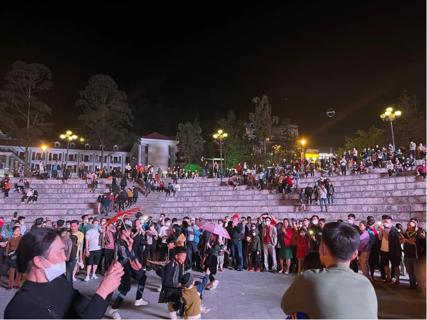 Quảng trường Sapa những ngày cuối tuần vừa qua thu hút rất đông du khách tới tham quan, vui chơi. Ảnh Amazing SAPA.