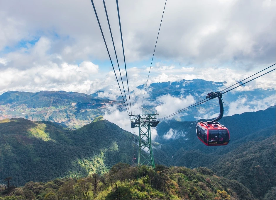Du khách ngồi trên cáp treo lên đỉnh Fansipan có thể ngắm nhìn phong cảnh hùng vĩ của những ngọn núi và cả biển mây ngay trước mắt. Ảnh: Pinterest