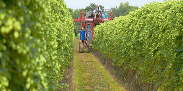 Thu hoạch hoa bia ở vùng Kent, Vương quốc Anh.